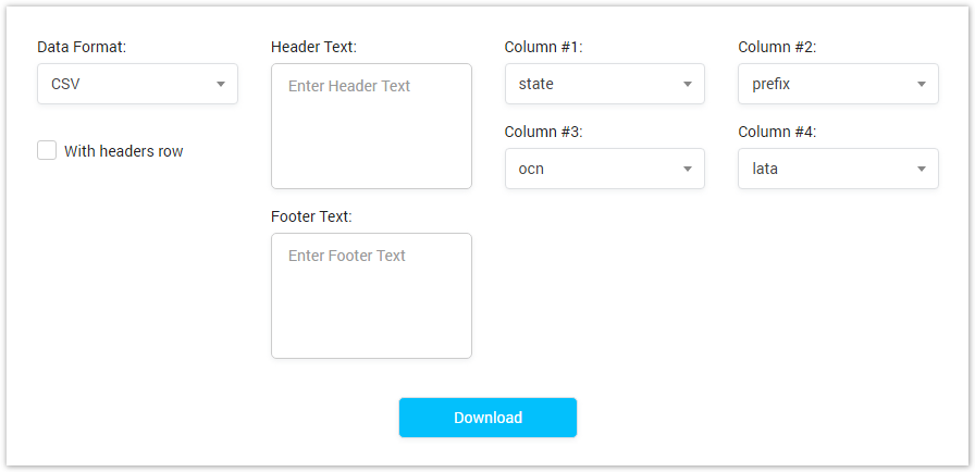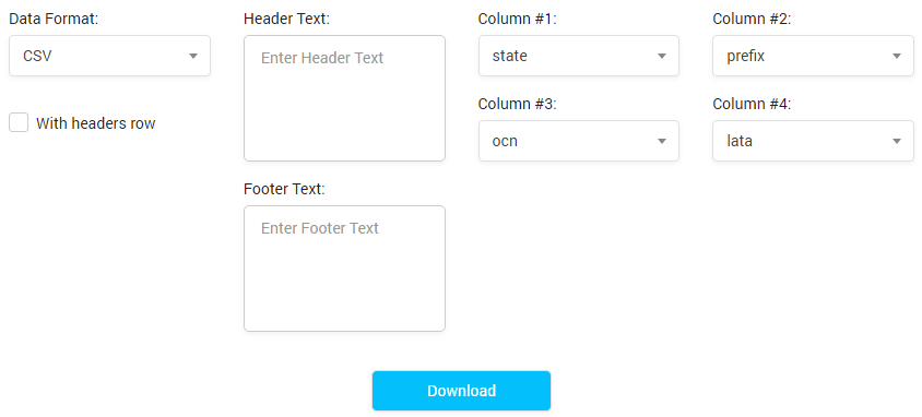 Data Format | Choose format of exporting file: CSV or XLS. |